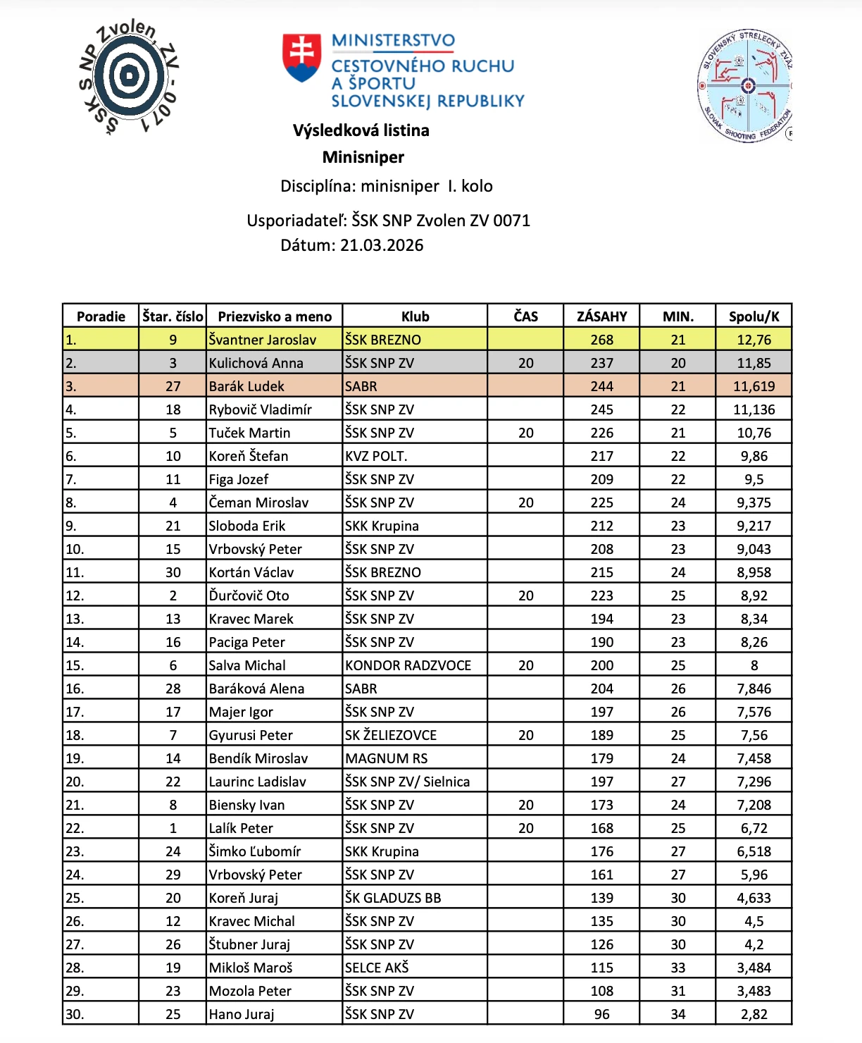 Minisniper I.kolo 21.3.2026